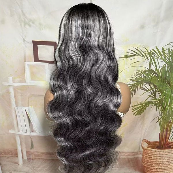 Reshine Hair Body Wave Human Hair Wigs Black And Grey Highlights Hair Wigs Color Hair Lace Wig