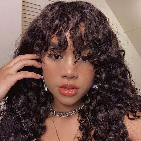 Reshine Hair Water Wave Affordable Human Hair Wigs With Bangs Curly Hair Wigs Sew In Wig