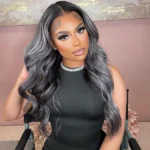 Reshine Hair Body Wave Human Hair Wigs Black And Grey Highlights Hair Wigs Color Hair Lace Wig